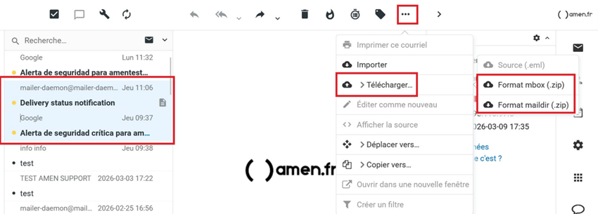 • Les e-mails seront téléchargés sous forme de fichier .zip.