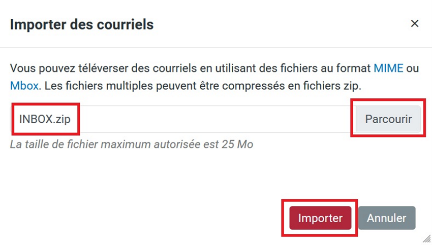 Suivez les étapes ci-dessous pour télécharger puis importer des e-mails.