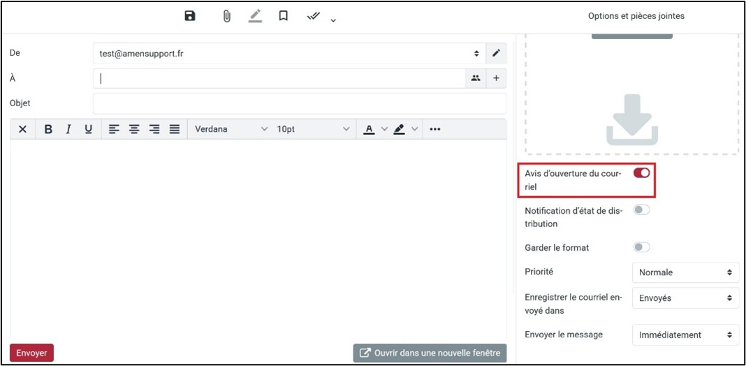 Le nouveau Webmail permet de demander un accusé de réception pour un e‑mail que vous envoyez.