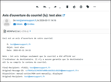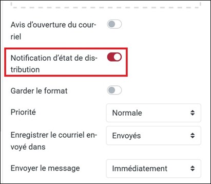• Quand vous activez cette option, le Webmail ajoute une demande spéciale dans l’en tête du message.