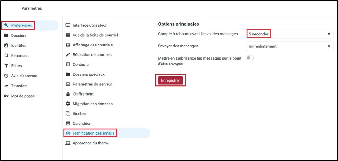 • Les messages programmés restent accessibles via la barre supérieure du Webmail (zone à préciser avec capture d’écran).