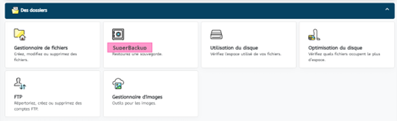 Dans le menu principal de votre panneau de contrôle, cliquez sur "SuperBackup"