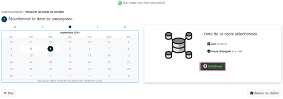 1. Sélectionnez la date de la sauvegarde de la base de données à restaurer.