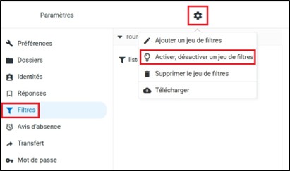 L’utilisateur retrouve tous les filtres disponibles dans Paramètres > Filtres.