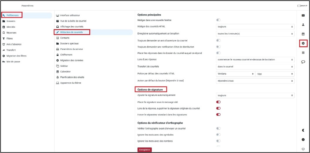 1 – Toujours dans les paramètres, cliquez sur « préférences », puis sur « Rédaction de courriels », et sous la rubrique « Options de signature », vous aurez plusieurs options :