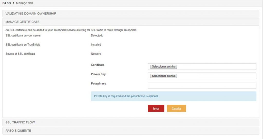 Une fois que SiteLock a vérifié l'enregistrement TXT, il vous laissera sélectionner le certificat SSL depuis l'option ‘Upload Certificate’.